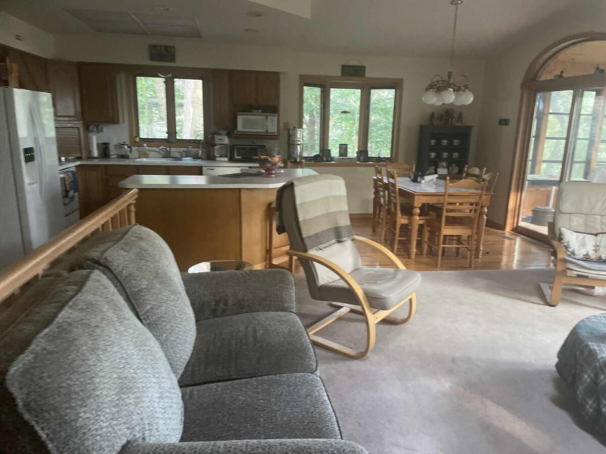 3 BR 2 bath sleeps 10. 1 hour north of St Cloud. Affordable lake home. Good fishing for bass and northern. Beautiful views peaceful setting nestled in pines. Many steps down to lake, good for cardio! Lovely, screened porch.