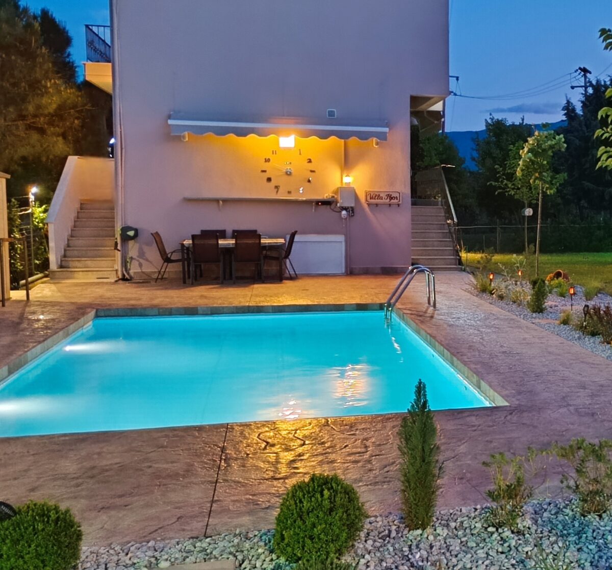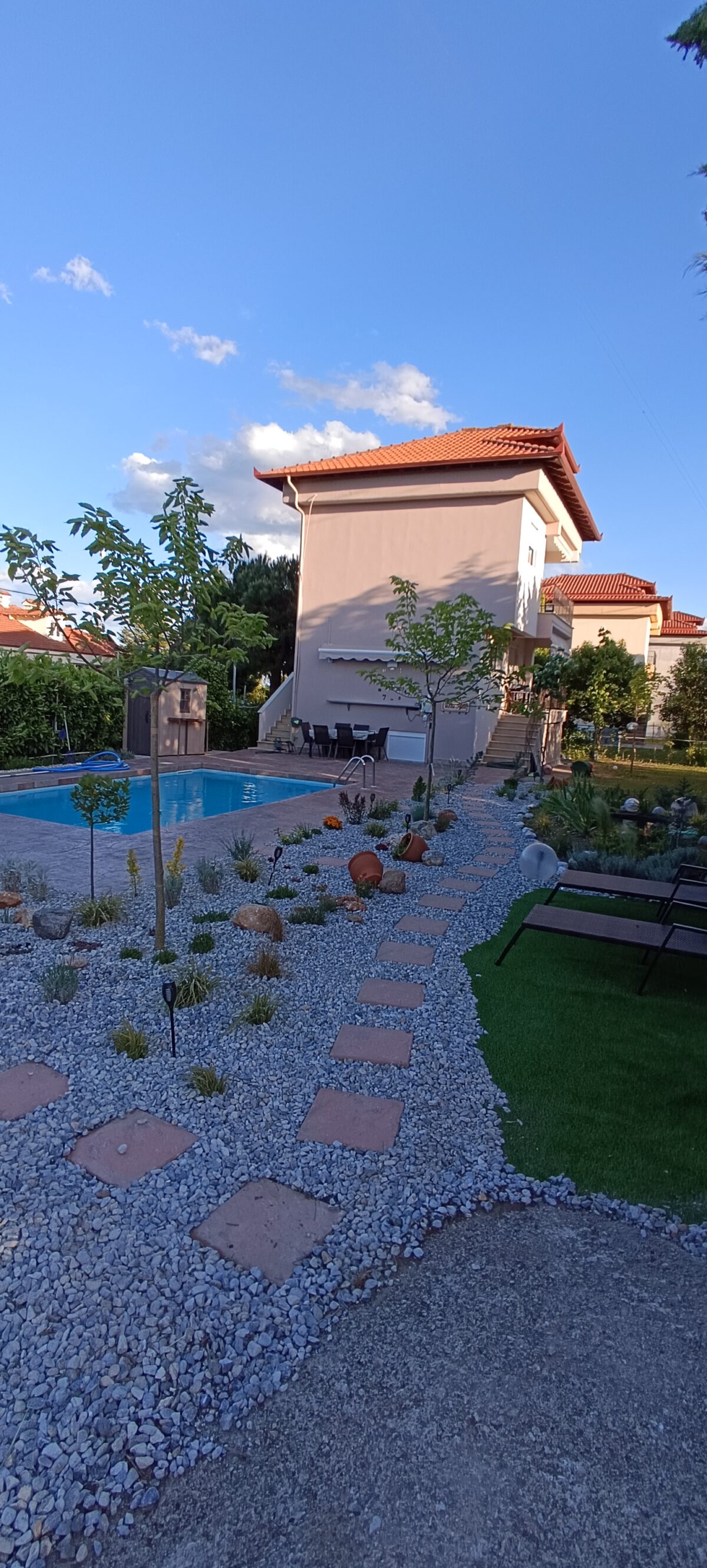 Our experience at the villa was truly unforgettable! The location of the villa is ideal, as it is located in a quiet place between the sea and Olympus, offering the perfect balance between relaxation and access to various activities. In the surrounding area there are many options for entertainment, such as beaches, restaurants, shops and hiking trails, which makes our stay full and interesting. The villa is equipped with all the amenities one could wish for. The rooms are spacious and comfortable, decorated with taste and care, while the common areas, such as the kitchen and the living room, are fully equipped and ideal for family moments and fun with friends. The exterior of the villa is equally impressive, with a beautiful garden, a fish pond and a swimming pool that offer moments of absolute relaxation. As well as an equipped playground ideal for children One of the biggest factors that made our stay so enjoyable was the owner of the villa. He was extremely helpful and friendly, always available to answer any questions we had and give us advice about the area. His hospitality made our stay even more enjoyable and comfortable. Overall, this villa offers a stay experience that combines comfort, luxury and excellent service in a beautiful location. We highly recommend this villa to anyone looking for a truly unforgettable holiday experience!